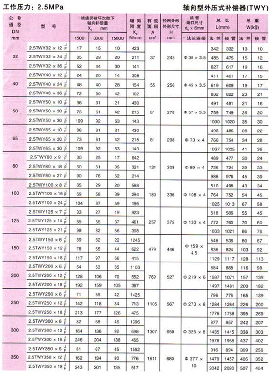 軸向型外壓式波紋補償器(TWY)參數7
