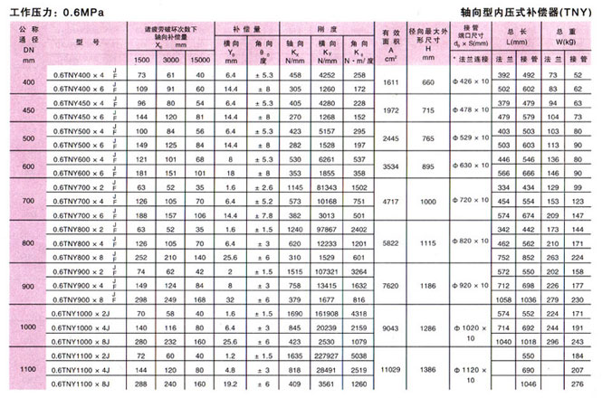 軸向型內壓式波紋補償器(TNY)參數6
