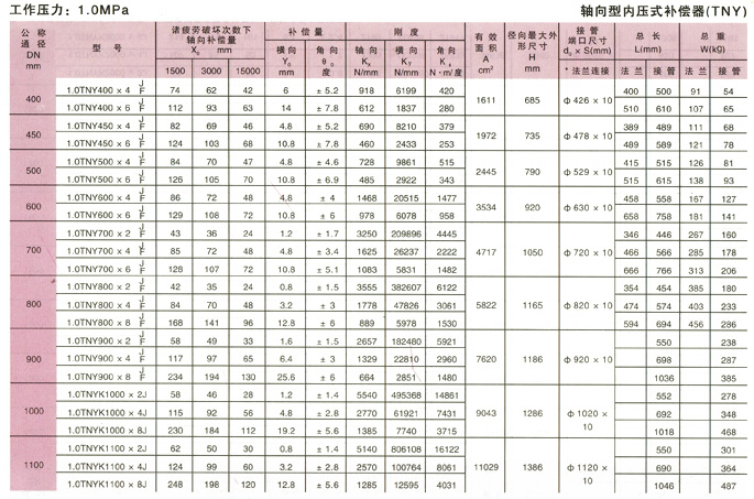 軸向型內(nèi)壓式波紋補償器(TNY)參數(shù)10