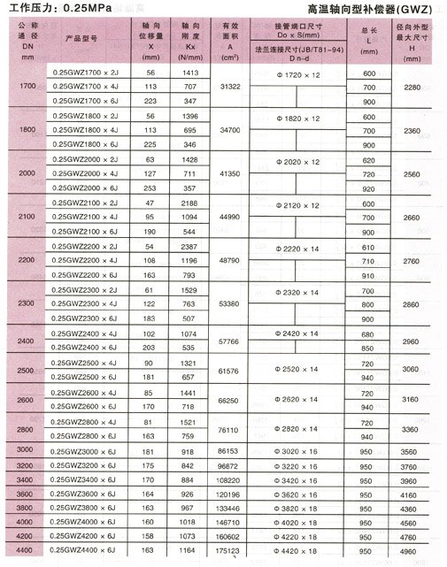 鋼鐵水泥行業(yè)高溫波紋補償器參數(shù)2