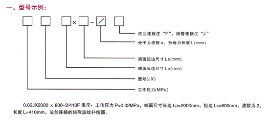 矩形波紋補(bǔ)償器(JX型)型號示例