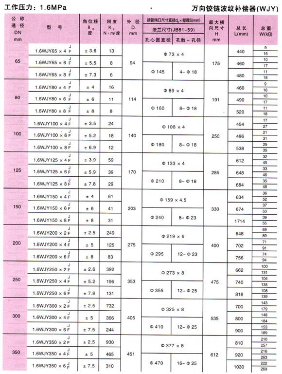 萬(wàn)向鉸鏈波紋補(bǔ)償器(WJY)參數(shù)6