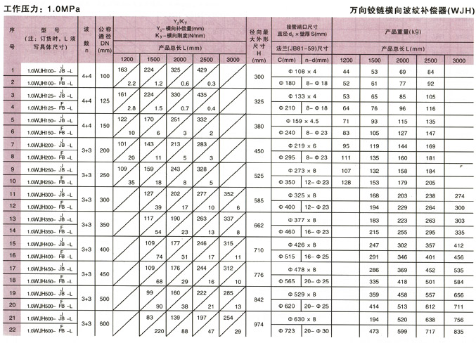 萬向鉸鏈橫向波紋補償器(WJH)產(chǎn)品參數(shù)3