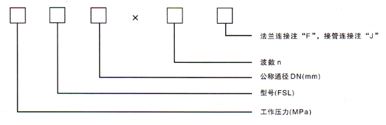 表示:工作壓力為0.6MPa,通徑DN=200mm,波數為12,接管連接的復式拉桿波紋補償器。