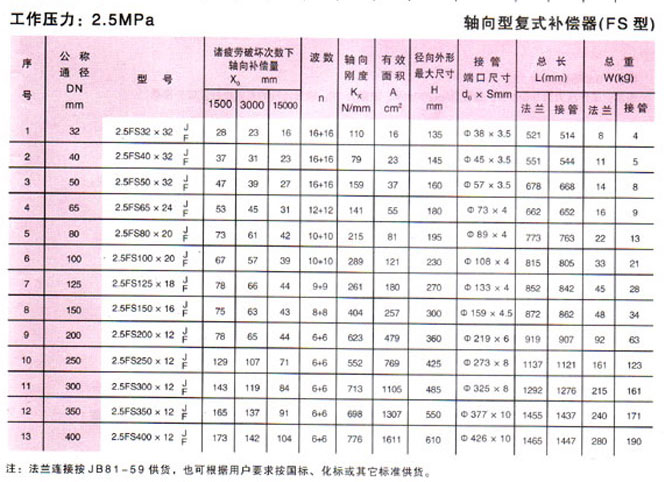 軸向型復(fù)式波紋補償器(FS型)參數(shù)2